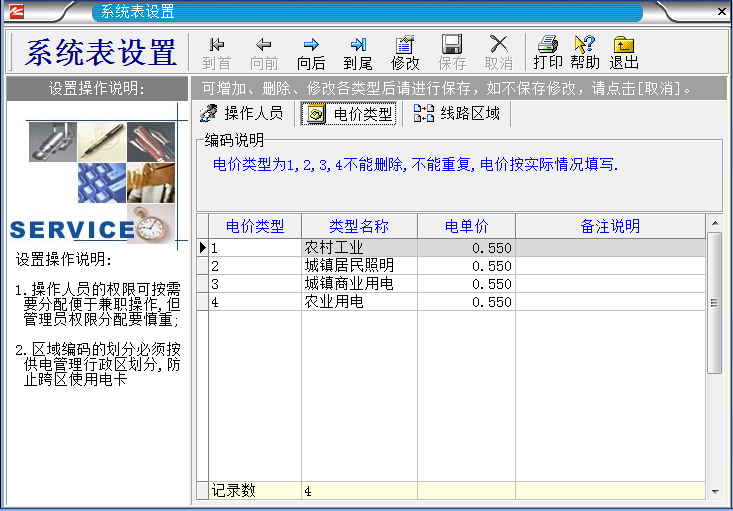 2.電價(jià)類型不能刪除只能修改。