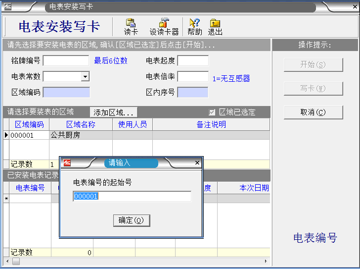 系統(tǒng)設(shè)置完成之后,把IC卡插入讀卡器,就進(jìn)入制作“區(qū)域設(shè)置卡”。如下圖