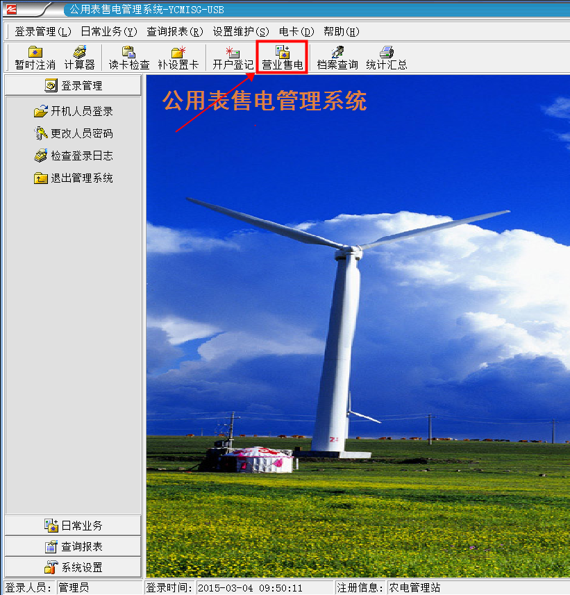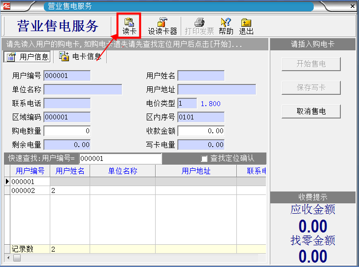1.首先把用戶購(gòu)電卡插入讀卡器,然后單擊“營(yíng)業(yè)售電