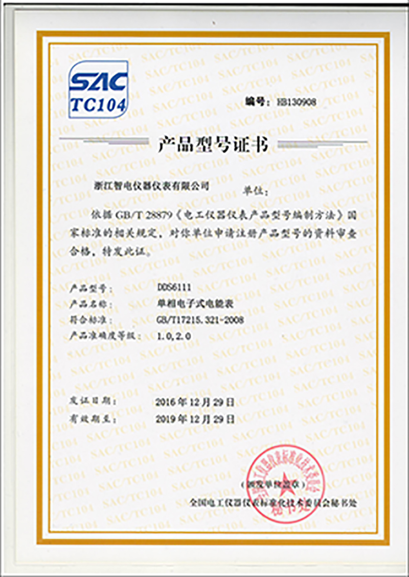 DDS6111產(chǎn)品型號證書