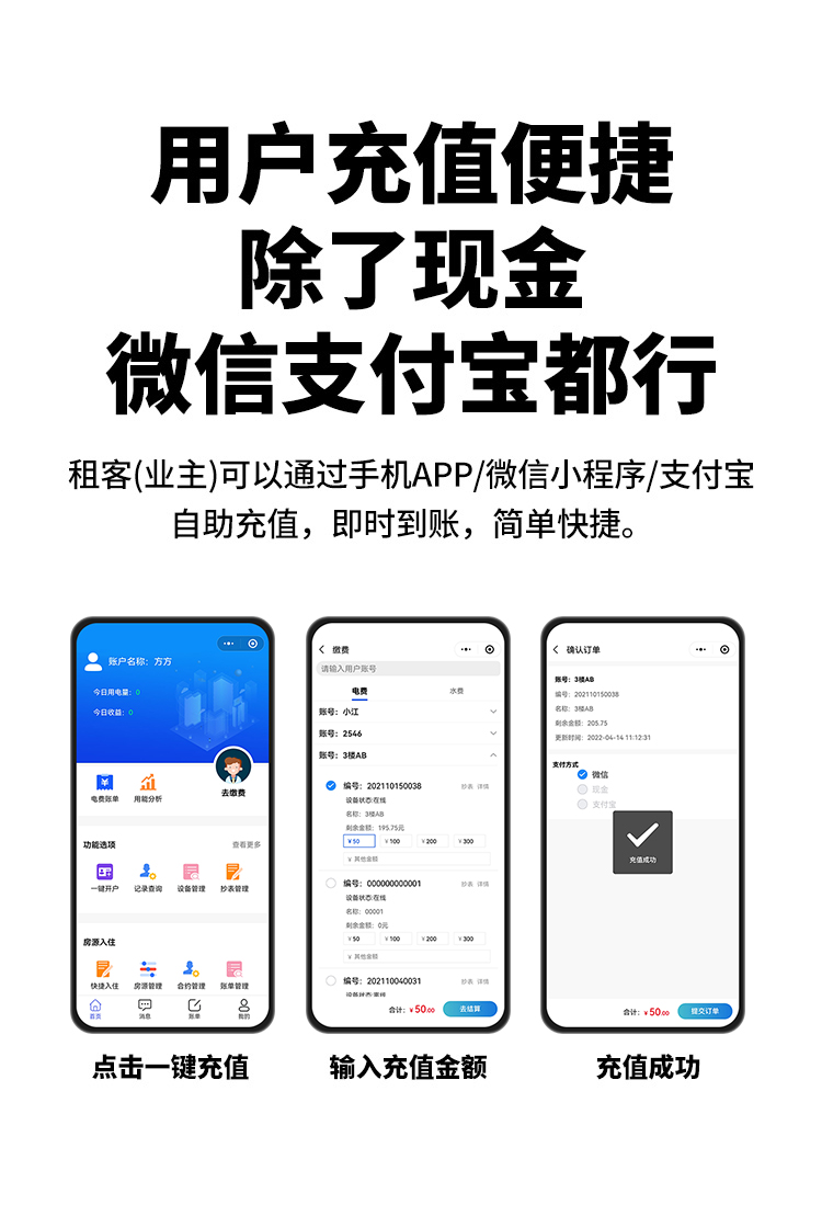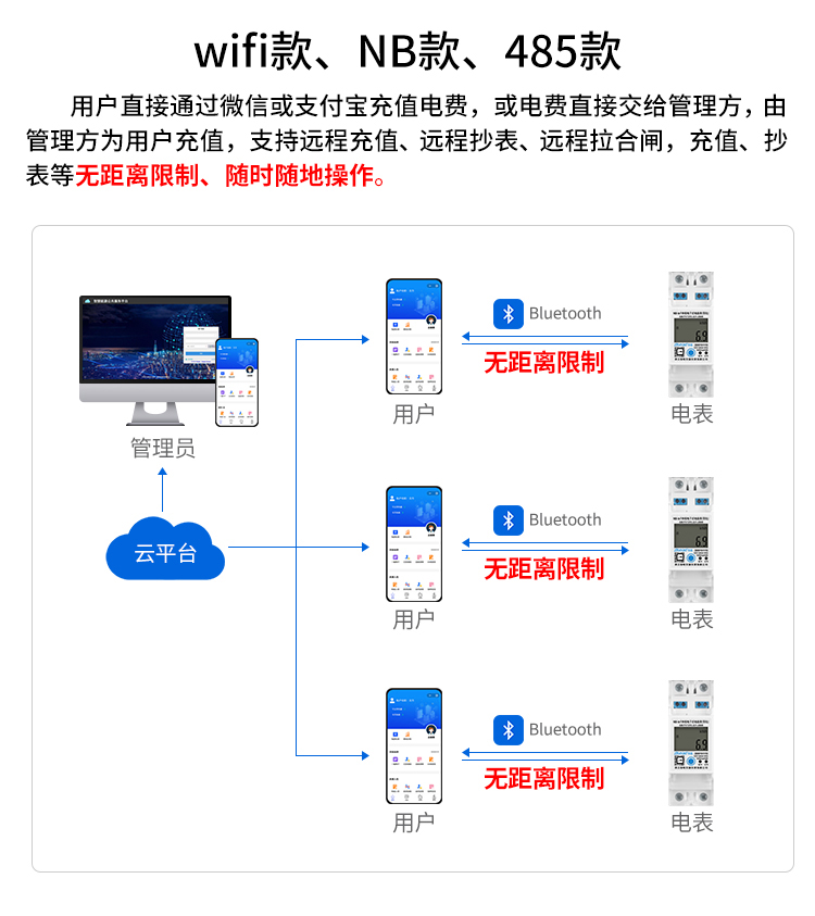 本公司DDSY6111/DDZY6111遠程智能電表與本公司遠程抄表系統(tǒng)和手機APP配套使用,遠程抄表管理系統(tǒng)具有實時抄表、定時抄表外,還提供了設備管理功能,如告警、余額短信通知、遠程充值、手機抄表、手機查詢、手機充值、預付費、后付費、自助充值機充值、遠程拉合閘、各種查詢報表、統(tǒng)計報表下載等功能。