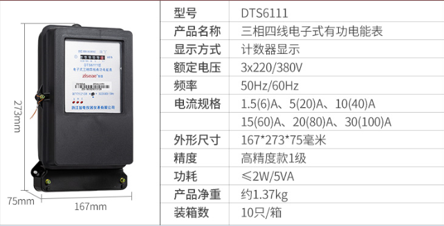 DTS6111型三相四線和DSS6111型三相三線兩種型號三相電子式有功電能表,內部運用集成電路在經過SMT工藝生產制作而成。結構設計合理,制作工藝先進,跟傳統的電能計量表對比,三相電子式有功電能表的測量準確度高、性能可靠、節能。