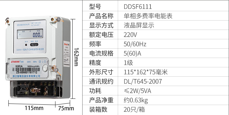 型號:DDSF6111單相多費率5-60A(2007規約)
