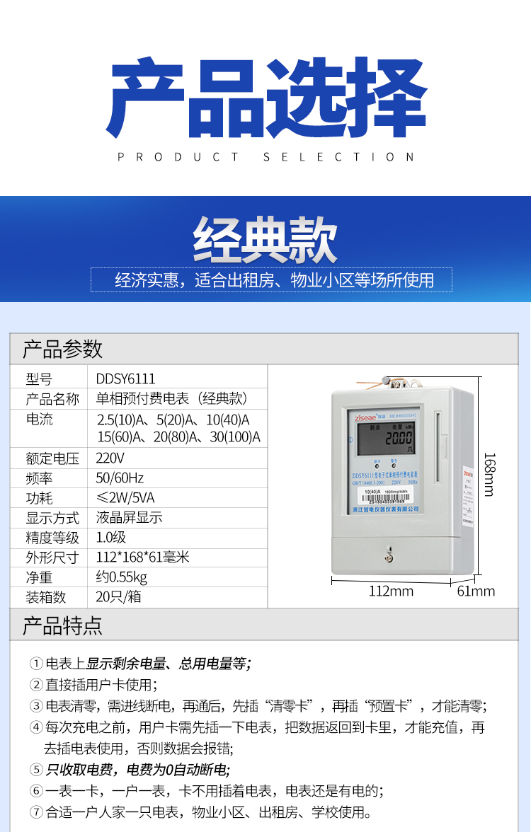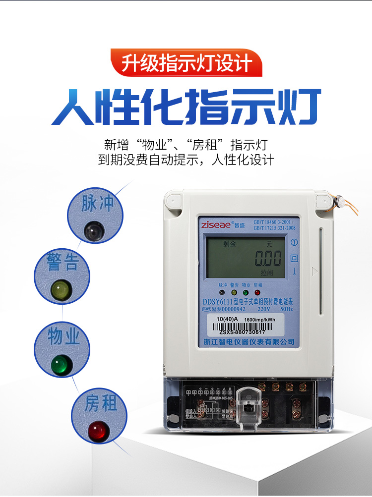 DDSY6111型電子式單相預付費電表,采用集成電路設計,全自動表面貼裝(SMT)生產工藝制造。電能表的線路設計和元器件選擇以較大的環境允差為依據,可保證整機穩定工作,精度高、高過載、低功耗,可靠性能高。內置磁保持繼電器。通過控制繼電器實現控制負載的通與斷,實現督促用戶先買電后用電的功能。