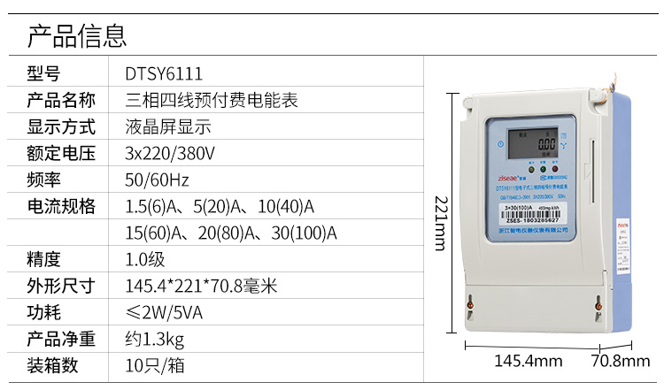 型號:DTSY6111三相四線預付費電表(1代物業版)