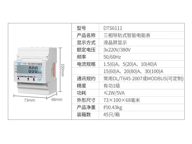 DTS6111、DSS6111型三相導軌式電能表4P(RS485通訊接口)